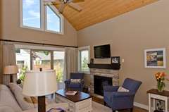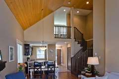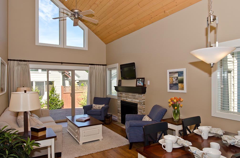 The textured carpet in the bedrooms and loft lends this cozy cottage rental a specific warmth, while the spirit of the West Coast can be seen reflected in the cottageās interior design. Sit back, relax, let nature take you away.
