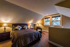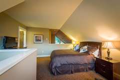 The Dogwood cottage has a versatile floor plan, with the added bonus of a second bathroom in the loft (perfect for extra guests!). The cottage's living room has a vaulted cedar ceiling and a beautiful fireplace. The fresh open-concept living and eating area is a wonderful space to spend time with family and friends on your Vancouver Island getaway.